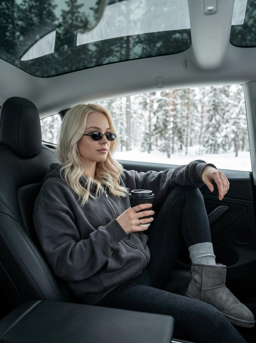 Through the window — snowy forest with tall trees and cold atmosphere.